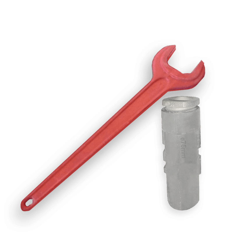 Grote sleutel voor het vast draaien van de schroefhuls in de grondkoker.